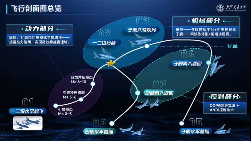Abstract of the Project: The project designs a spacecraft using TBCC-RBCC combined propulsion, integrates a mother-ship and sub-ship architecture to handle both atmospheric and orbital flight. Reinforcement learning enables intelligent guidance and adaptive control. It offers an efficient and reliable solution for future space tourism.