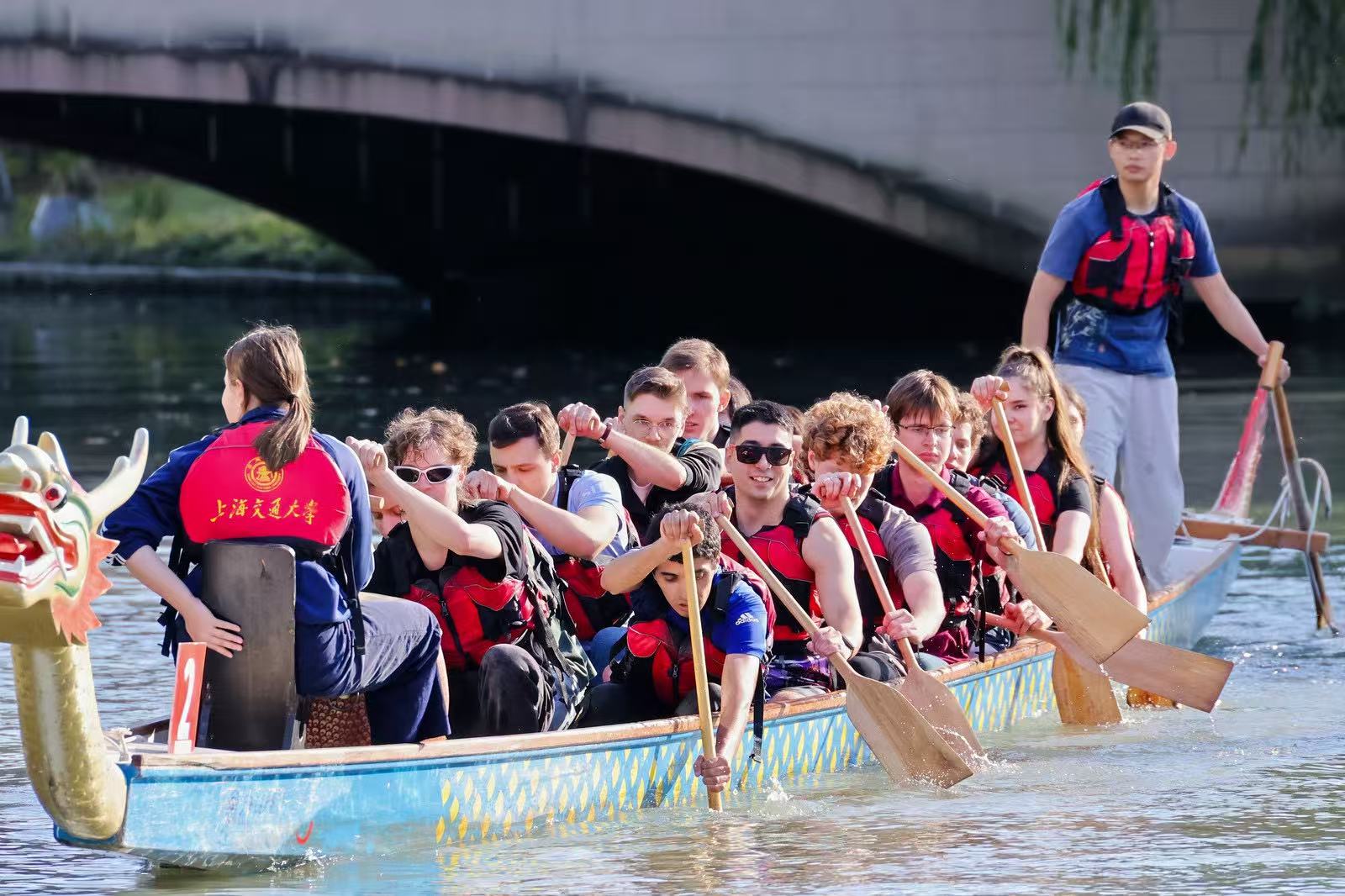On November 16, 2025, the Shanghai Jiao Tong University 2025 Graduate Student Dragon Boat Race was successfully held at the Water Sports Base in Minhang Campus. The event featured a 200-meter straight dragon boat race, divided into undergraduate and graduate categories. A dragon boat team composed of more than 20 graduate students from the School of Aeronautics and Astronautics competed and ultimately won second place in the graduate category.