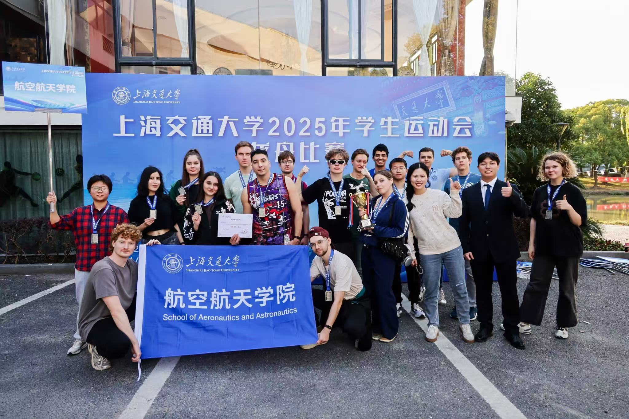 Every team member’s sweat, every synchronized paddle stroke, and every determined shout became the most cherished "medals" for the aerospace students. In the end, the School of Aeronautics and Astronautics dragon boat team achieved second place, finishing just 0.13 seconds behind the first-place team. The team commemorated the moment with a group photo.