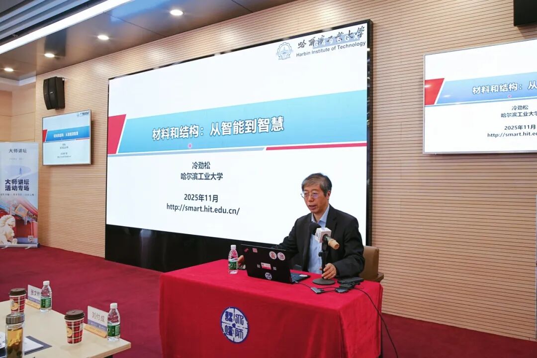 11月11日,上海交通大学第271期大师讲坛在航空航天学院报告厅开讲。中国科学院院士、欧洲科学院外籍院士、哈尔滨工业大学未来技术学院院长冷劲松教授应邀做题为《材料和结构:从智能到智慧》的专题报告。上海交通大学副校长曾小勤,研究生院副院长张文明,航空航天学院党委书记胡士强、院长刘付成等出席讲坛。讲坛由研究生院主办、航空航天学院协办,吸引了全校百余位师生到场聆听。